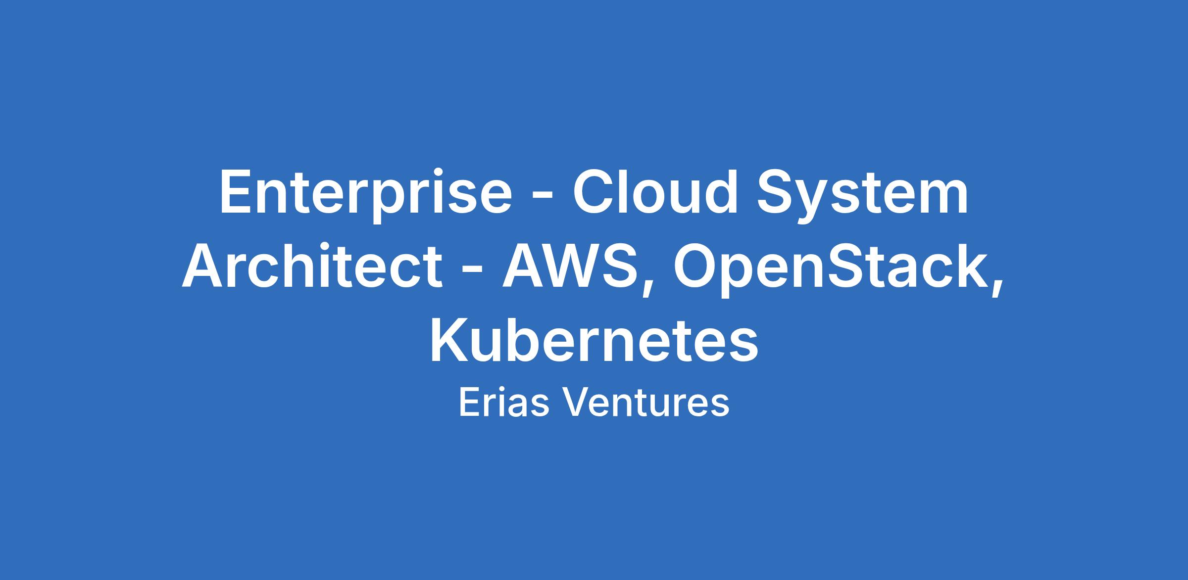 Enterprise - Cloud System Architect - AWS, OpenStack, Kubernetes